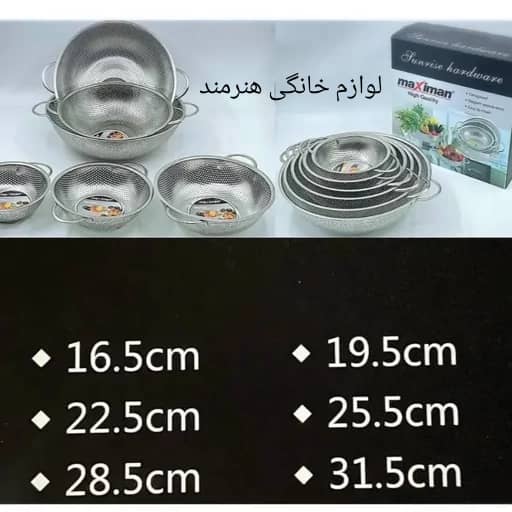 وزن خالص: 3000 گرم آبکش پانج ۶ تکه ابعاد در تصویر قابل مشاهده است استیل آهنربا نگیر کیفیت عالی کارتن ۱۰۰ عددی